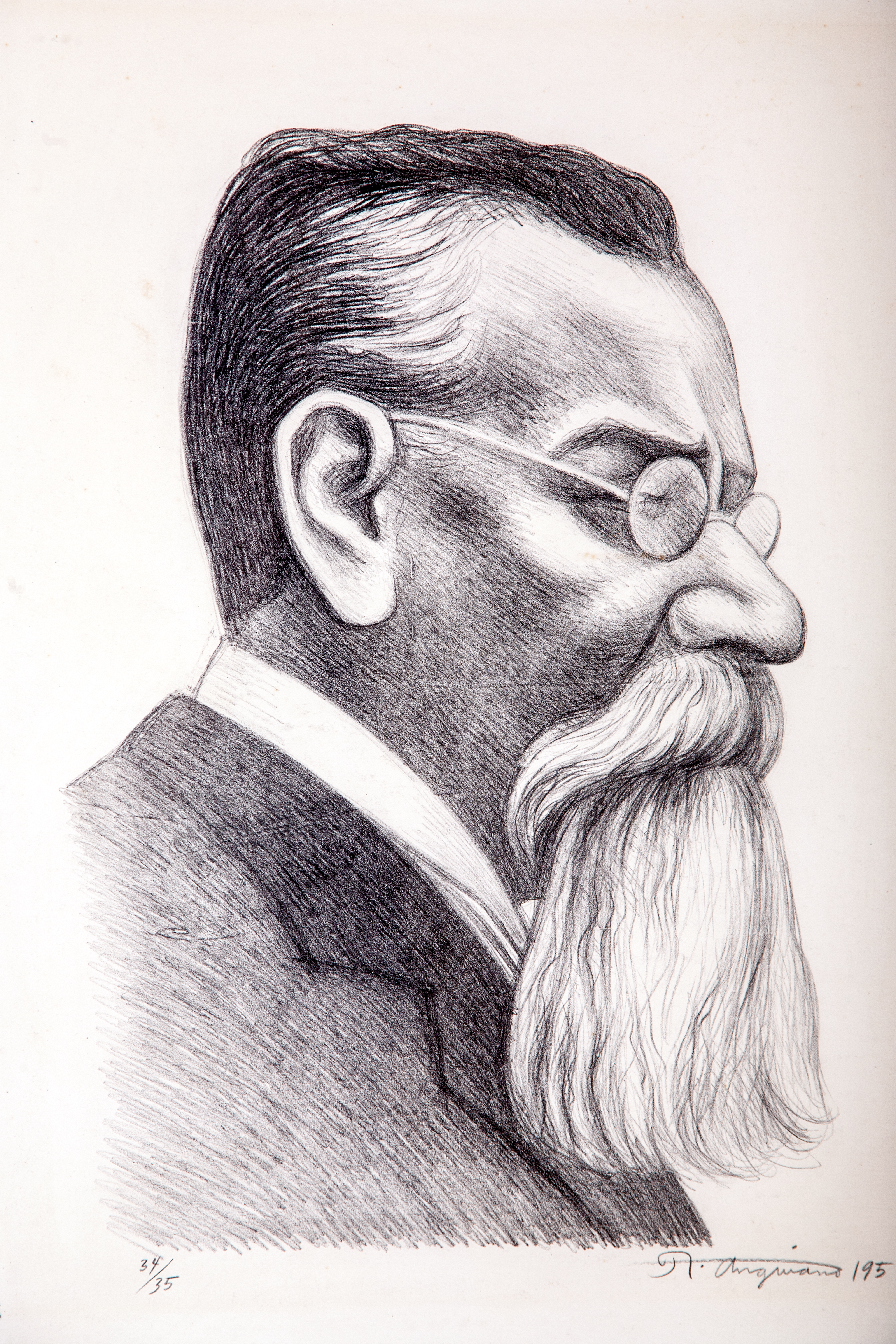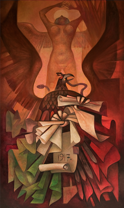 Gerardo Murillo “Dr. Atl”, Venustiano Carranza y Félix F. Palavicini, México, ca. 1950-1960, pastel sobre papel. Colección Museo Casa de Carranza, INAH